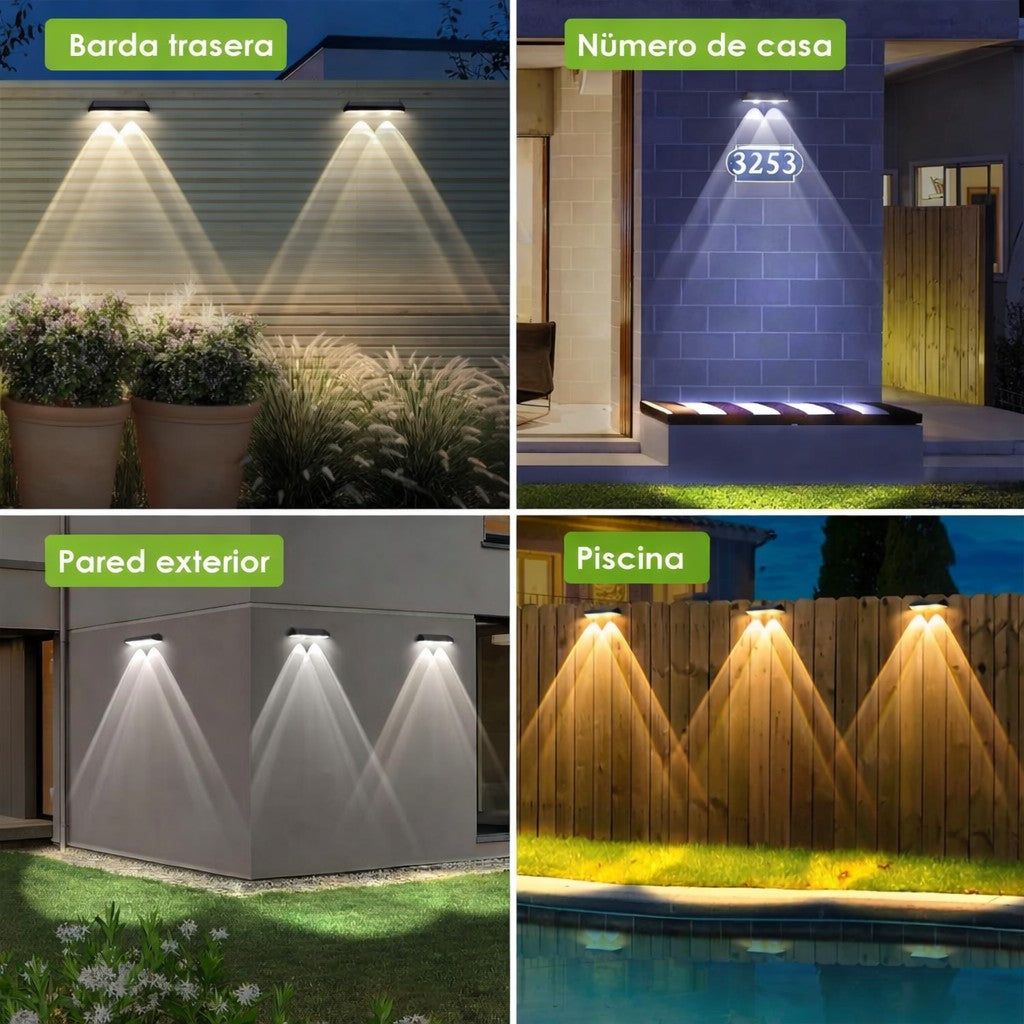 Nuestro aplique de pared solar no solo ilumina, sino que también añade un toque elegante y contemporáneo a tus muros y jardines, creando un ambiente mágico.